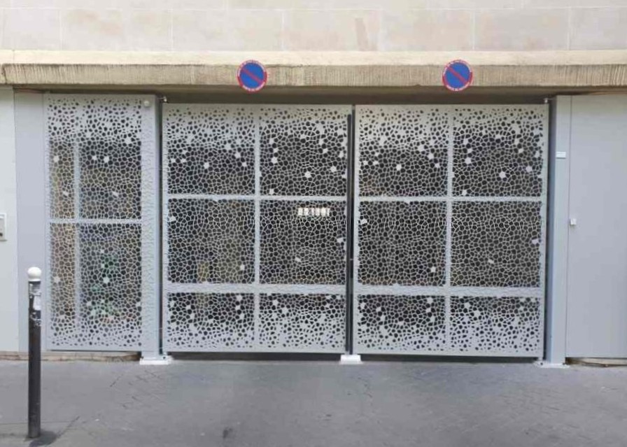 Tôles nervurées, planes, barreaudage, ventilation perforée, tôle plane formant des joints creux, remplissages sur consultation : découpe laser, bois, ventelles, verre, inox. |